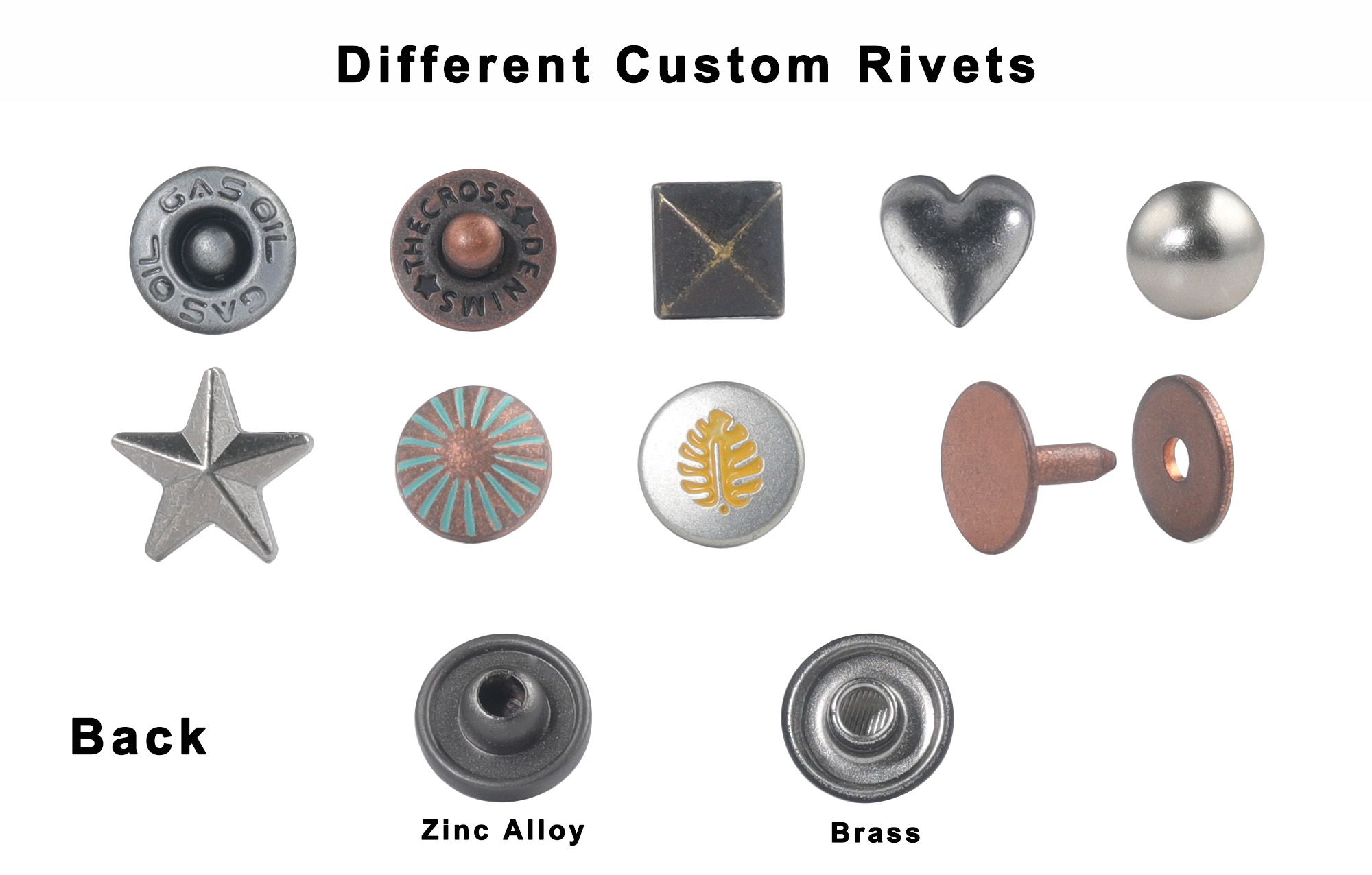 China Manufacturer Custom Engrave LOGO Rivets 9MM 9.5MM Different Color Plating Metal Jeans Rivet For Denim Pants Bags Shoes