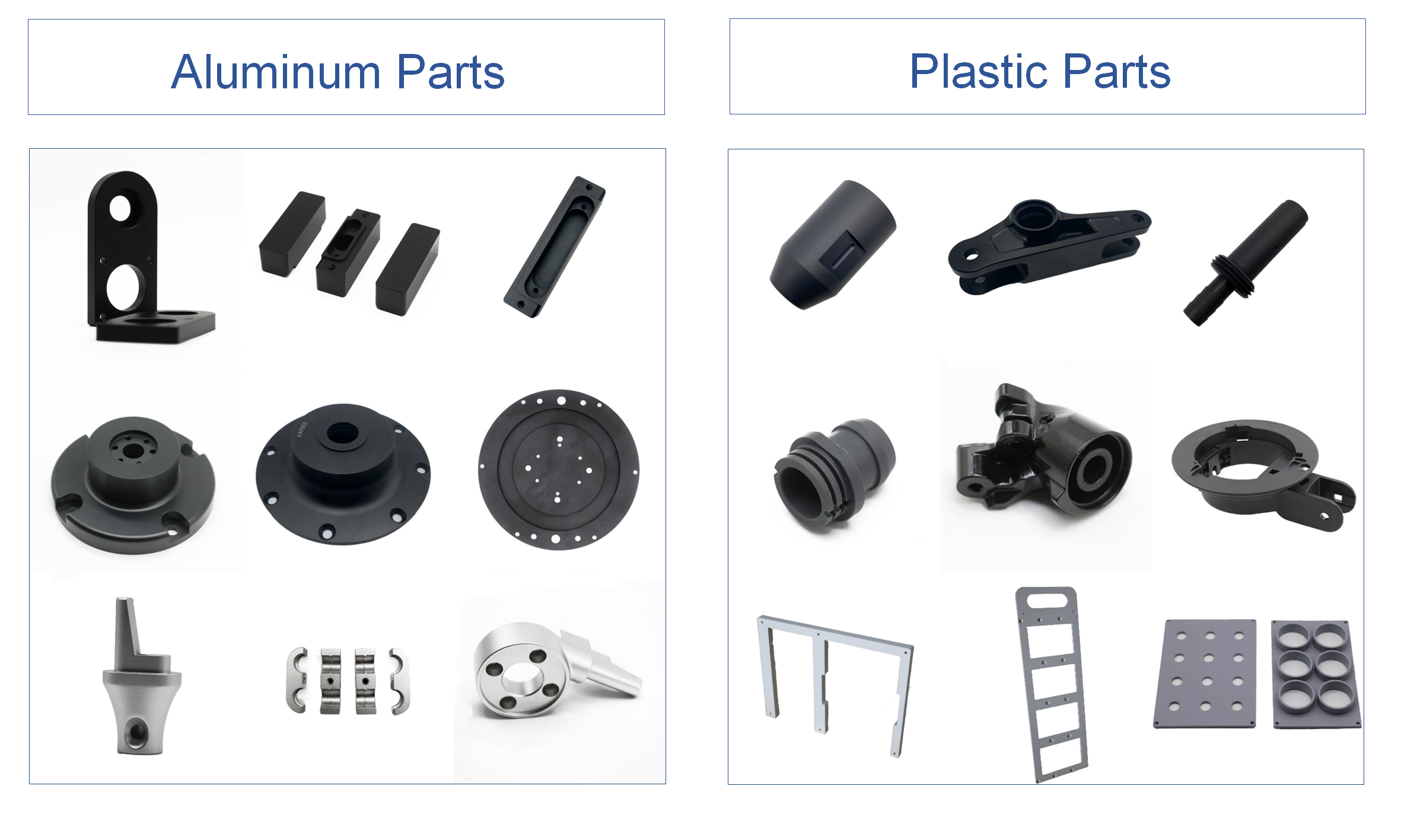 Turning, milling, drilling, wire cutting, welding, casting, forging, assembling, etc.